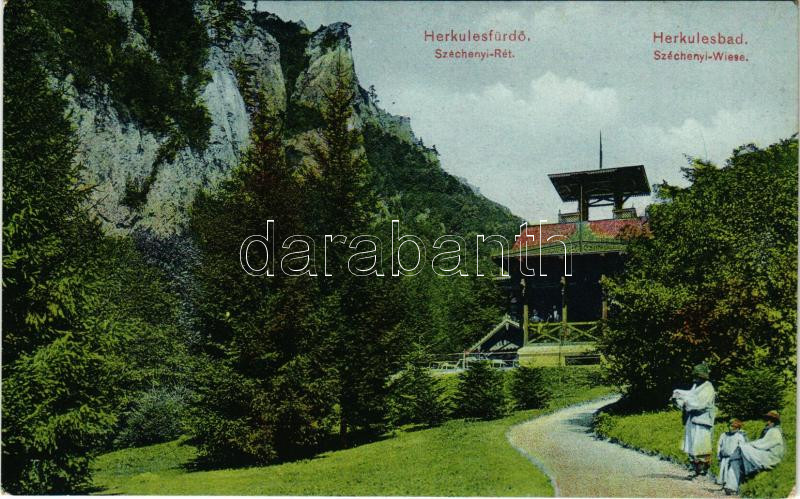 1913 Herkulesfürdő, Herkulesbad, Baile Herculane; Széchenyi rét, kiosz...
