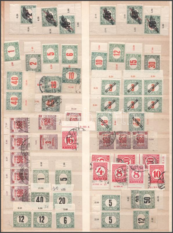57 db portóbélyeg összegző számokkal, ívszéli jelzésekkel