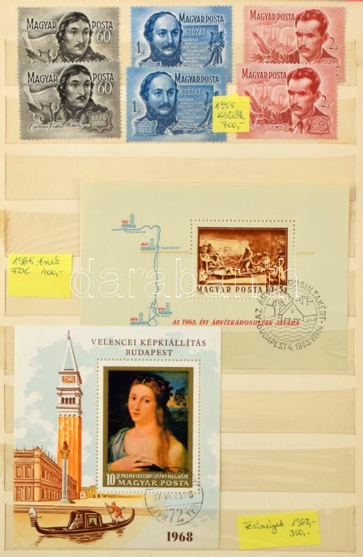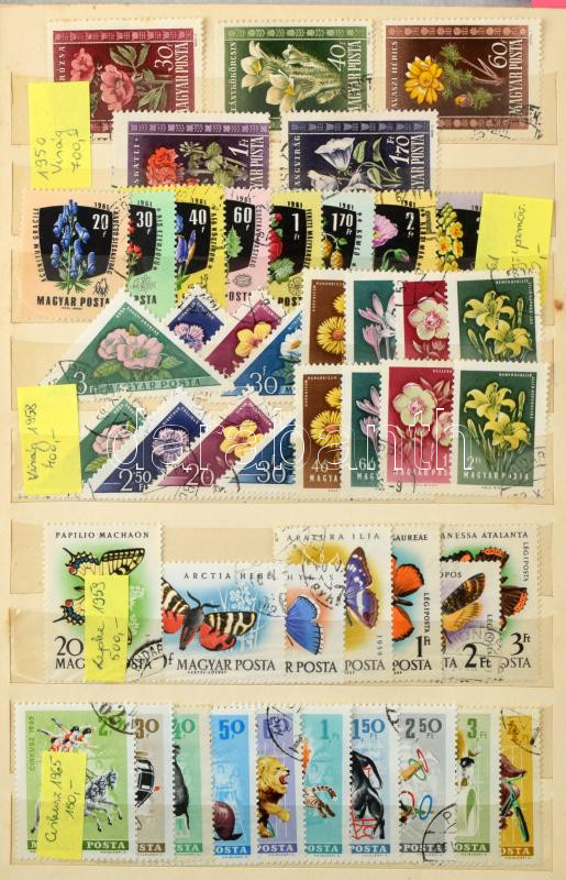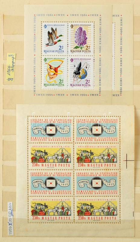 Description: Magyar összeállítás az 1950-es évektől 10 lapos közepes berakóban és néhány stecklapon, benne sorok és blokkok kb a 2000-es évekig, néhol több példányban