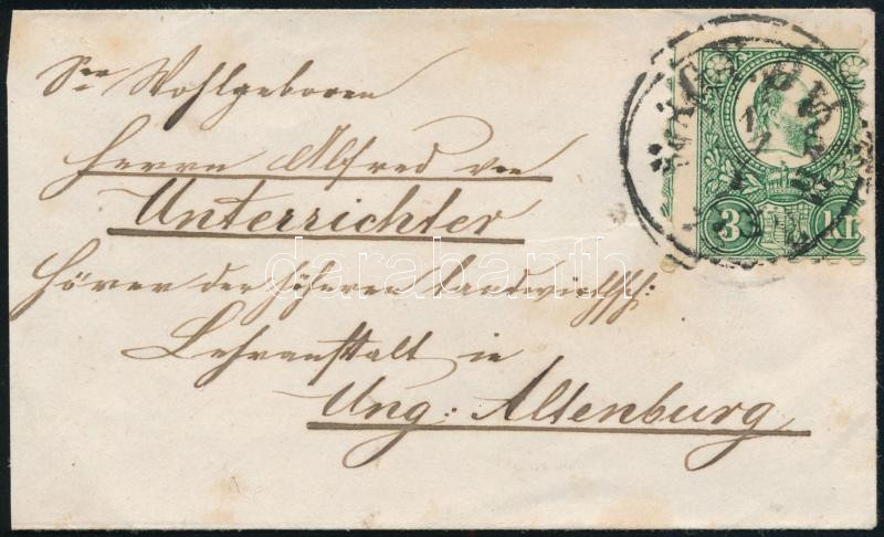 1873 Réznyomat 3kr mini méretű (94x57 mm) helyi levéleN, elfogazva, &q...