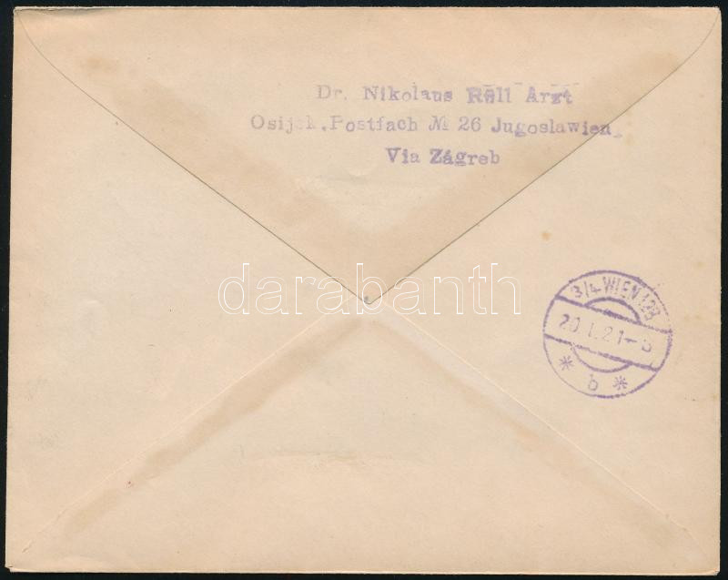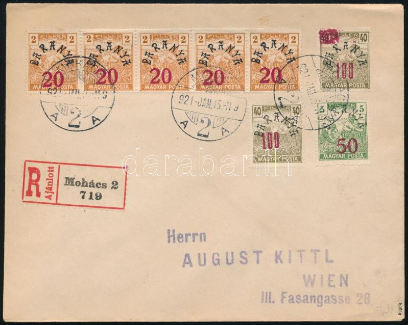Baranya 1921 Dekoratív ajánlott levél "MOHÁCS" - "WIEN"