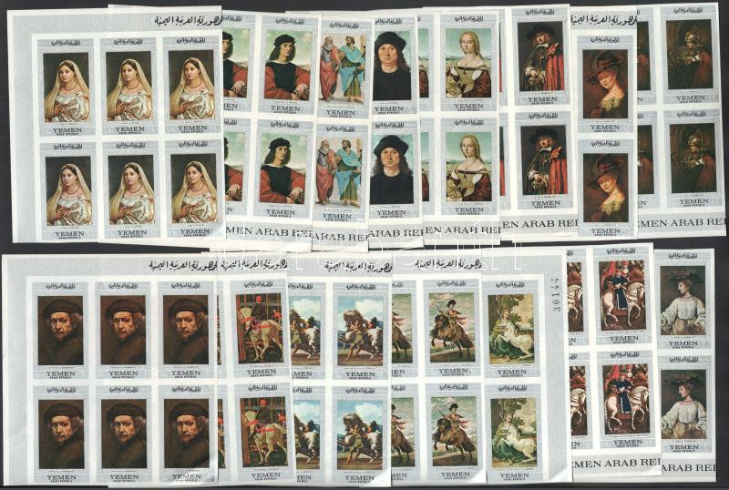 Jemeni Köztársaság 1968 Festmények vágott sor ívsarki hatostömbökben Mi 756-760 A-C (Mi EUR 216,-) (saroktörések / folded corners)