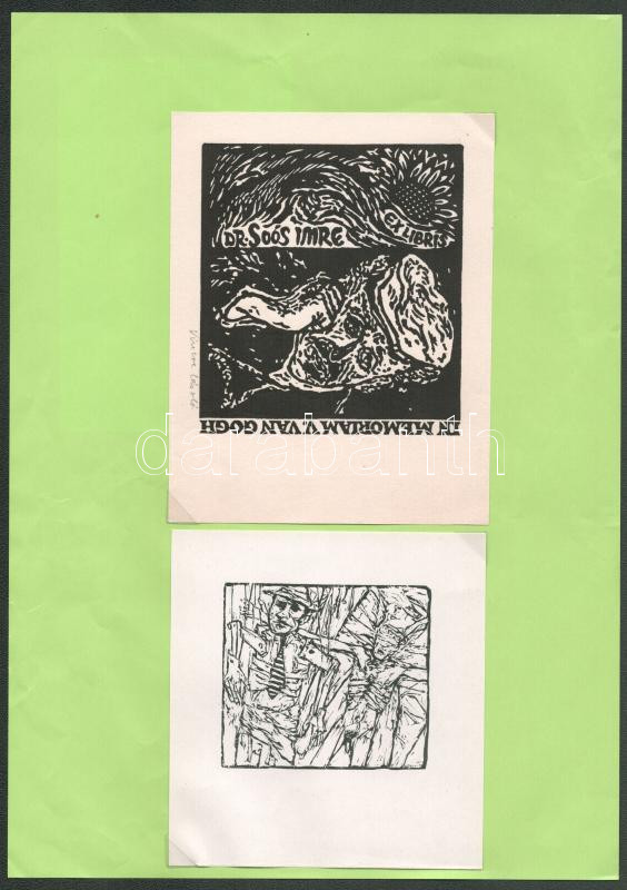 6 db magyar ex libris: klf technikák és alkotók közötte Kőnig Róbert, ...