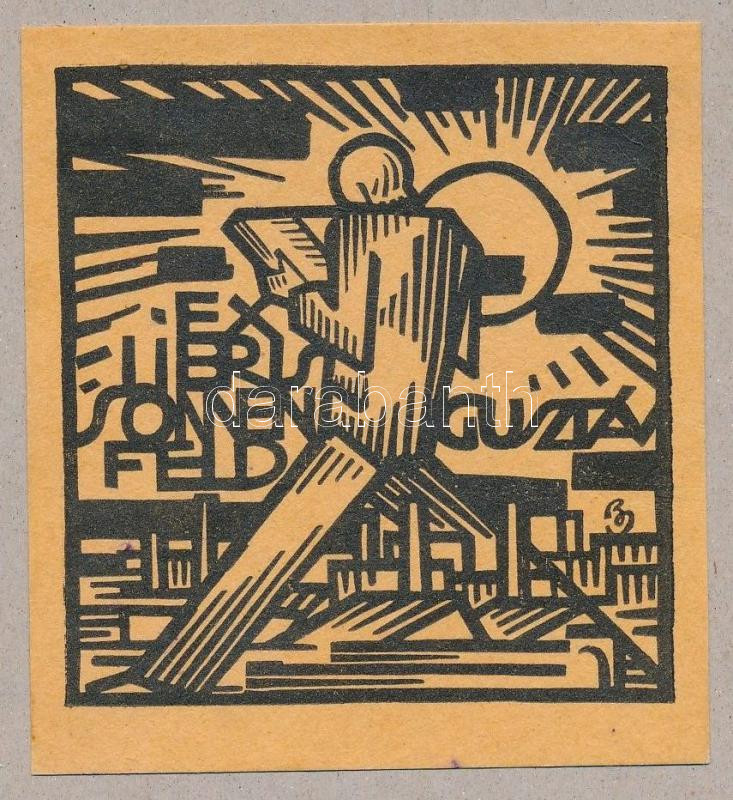 Balogh István (1890-1956): Ex libris Sonnenfeld Gusztáv, fametszet, pa...