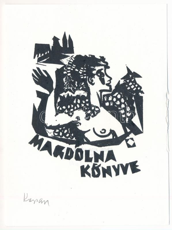 Kopasz Márta (1911-2011): Magdolna könyve (Ex libris). Linómetszet, pa...