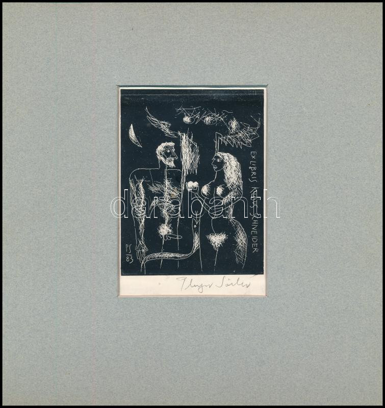 Plugor Sándor (1940-1999): Ex libris Klaus Schneider. Linómetszet, pap...