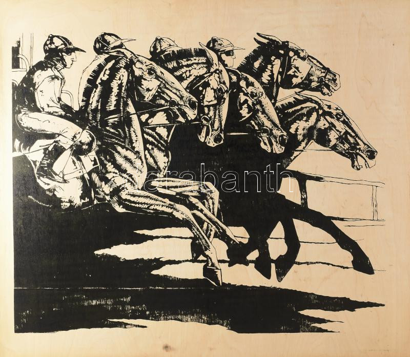 Jelzés nélkül: Lóverseny. Szitanyomat. Fa. 54x66 cm.