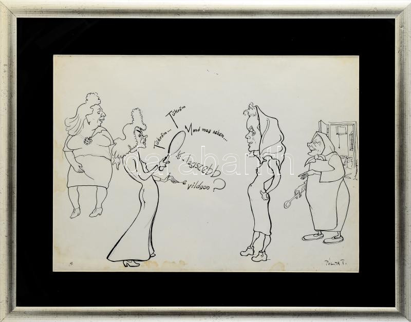 Pólya T. jelzéssel: Tükröm, tükröm.... Tus, papír. Kissé foltos. Üvegezett fakeretben, 29×41 cm