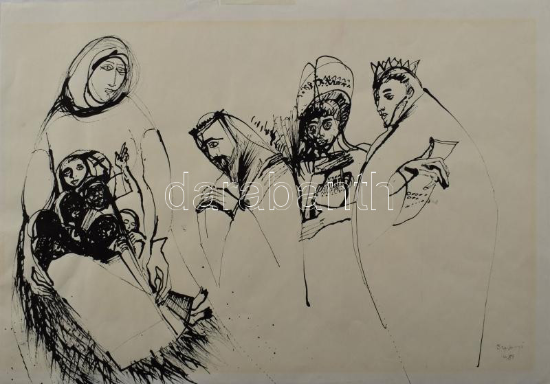 Bazsonyi Arany (1928-2011): Háromkirályok, 1984. Tus, toll, papír, jel...