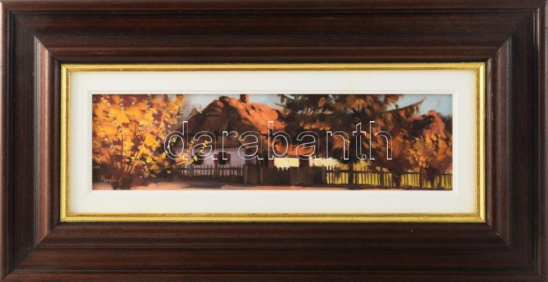 Bodor Miklós (1925-2010): Utcarészlet. Olaj, farost. Jelzett. Dekoratív fakeretben. 10x35 cm
