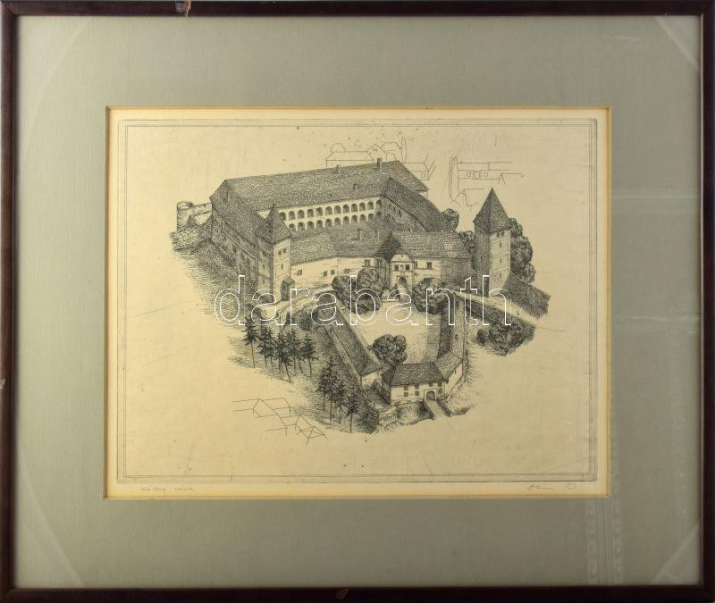 Deim Pál (1932-2016): Kőszeg vára. Rézkarc, papír, jelzett, üvegezett ...