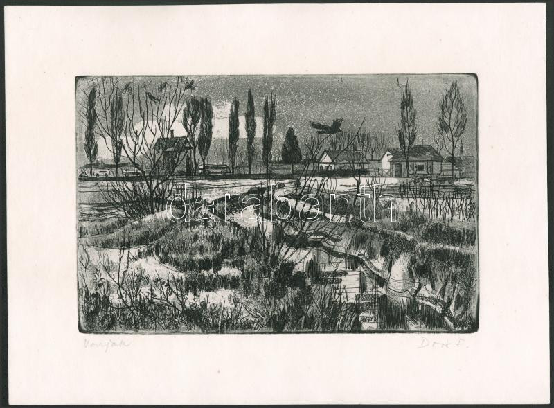 Doór Ferenc (1918-2015): Varjak. Rézkarc, papír, jelzett, 18,5x29,5 cm