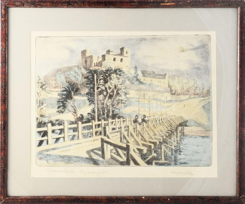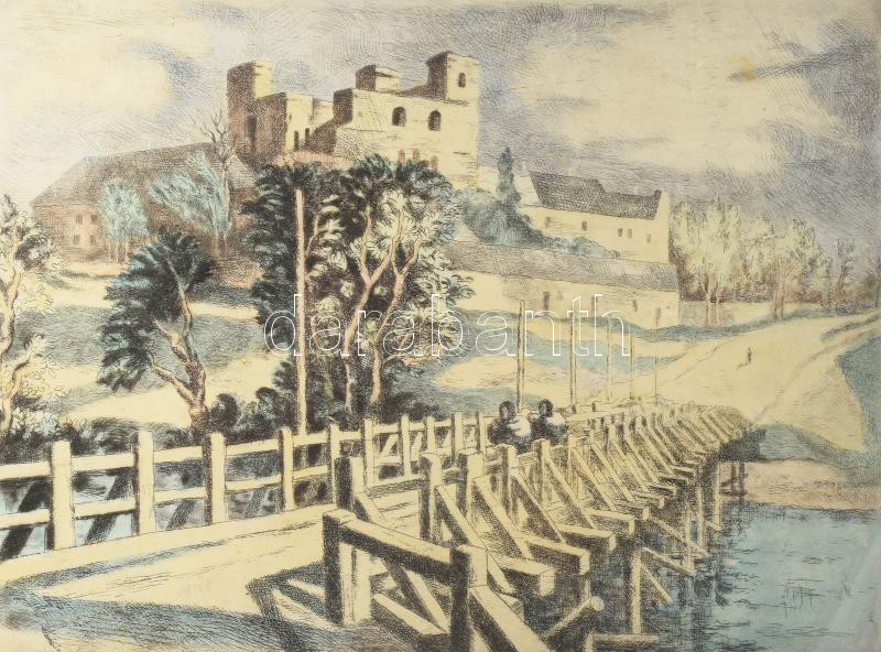 Duray Tibor (1912-1988): Sárospataki Rákoczi vár. Színezett rézkarc, p...