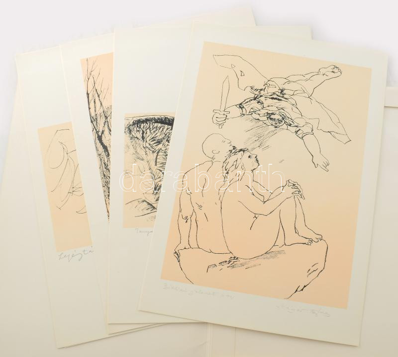 Grafikák Barczi Pál, Csabai Kálmán, Feledy Gyula, Kunt Ernő, Lenkey Zoltán, Mazsaroff Miklós, Máger Ágnes, Seres János, Tóth Imre grafikáival. Nyomat, papír, többségében jelzett. Kiadói kissé foltos, gerincén kissé szakadt papírmappában. Pető János műve hiányzik!42x30 cm