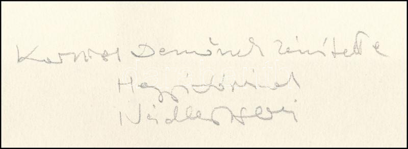 Description: Korniss Dezső (1908-1984): Kereszt, 1981. Szitanyomat, papír, jelzés nélkül. Pesti Műhely kiadásában és nyomásában megjelent mappából. Hátoldalán "Korniss Dezsőnek készítette" felirattal valamint Nádler István (1938-) és Hegyi Lóránd (1954-) művészettörténész, Korniss Dezső monográfusa, a mappa borítóján lévő tanulmány szerzőjének autográf aláírásáival! 30×30 cm
