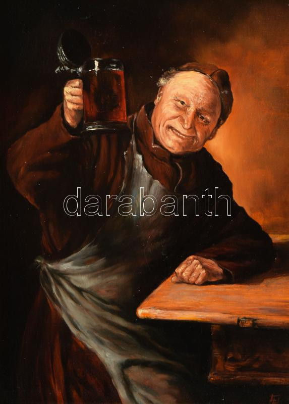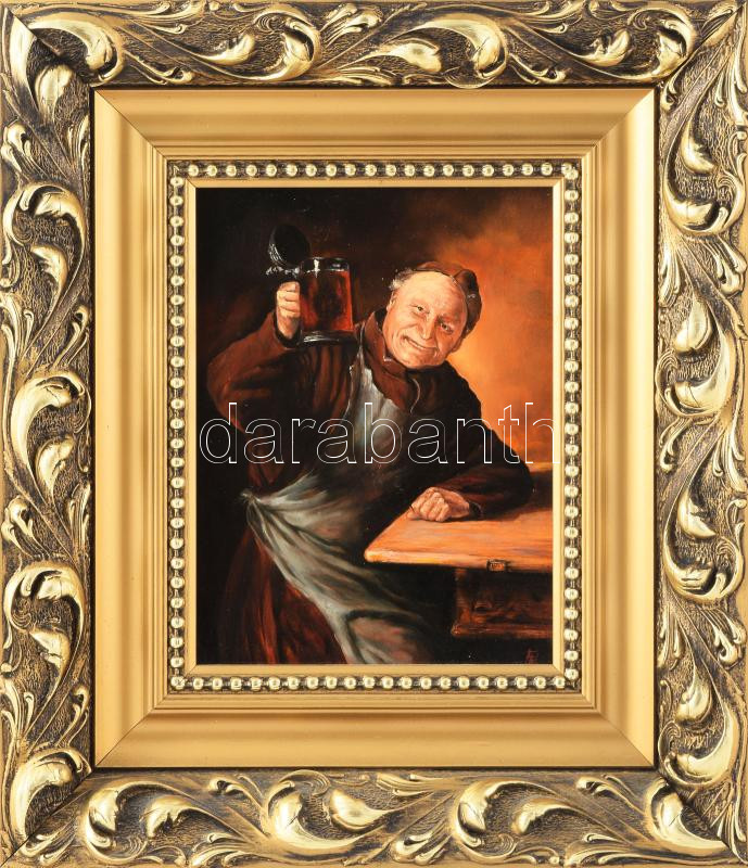 Laluk György (1954-2020): Sörivó barát. Olaj, fa, jelzett. Dekoratív f...