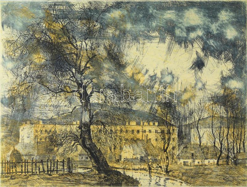 Lukovszky László (1922-1981): Öreg fűz (Miskolc). Színes rézkarc, papí...