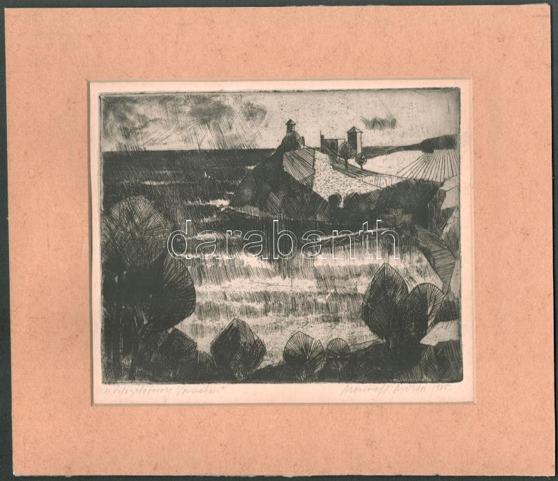 Mazsaroff Miklós (1929-1997): Világítótorony Várnában, 1965. Rézkarc, ...
