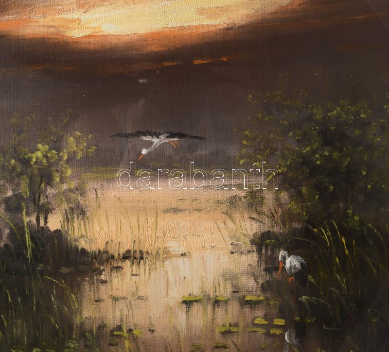 Mesterházy Dénes (1900-1949 körül): Táj gólyákkal. Olaj, karton, jelze...
