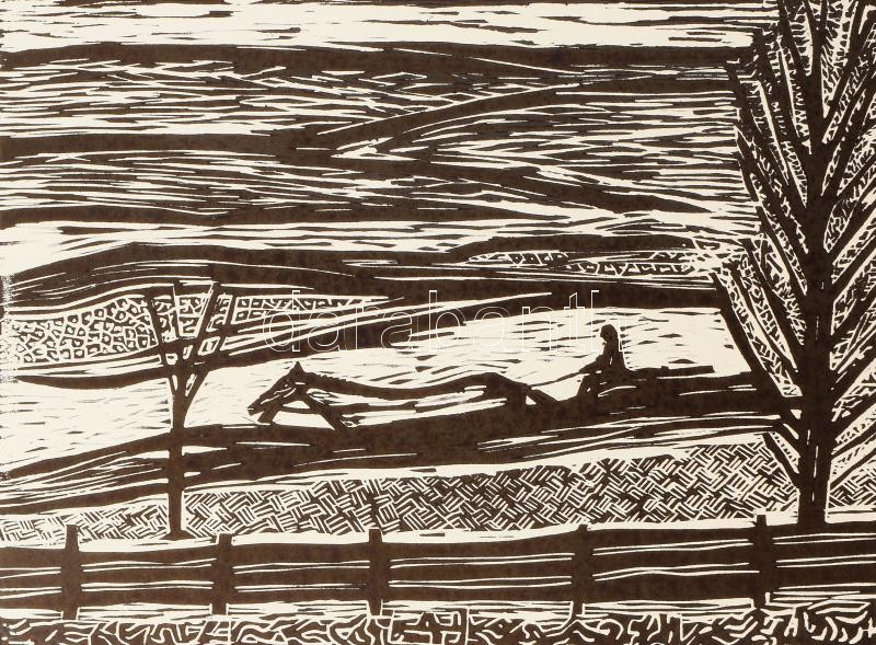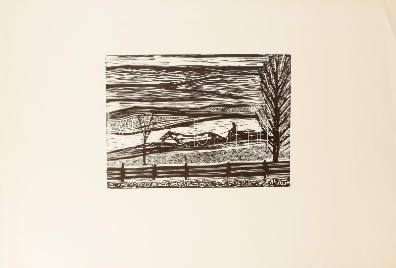 Perei Zoltán (1913-1992): Táj. Fametszet, papír. Jelzés nélkül. Lapszé...
