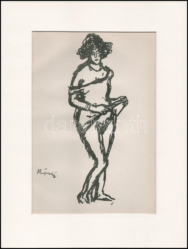 Rippl-Rónai József (1861-1927): Akt. Cinkográfia, papír, jelzett a cinkográfián, paszpartuban, 24×16 cm