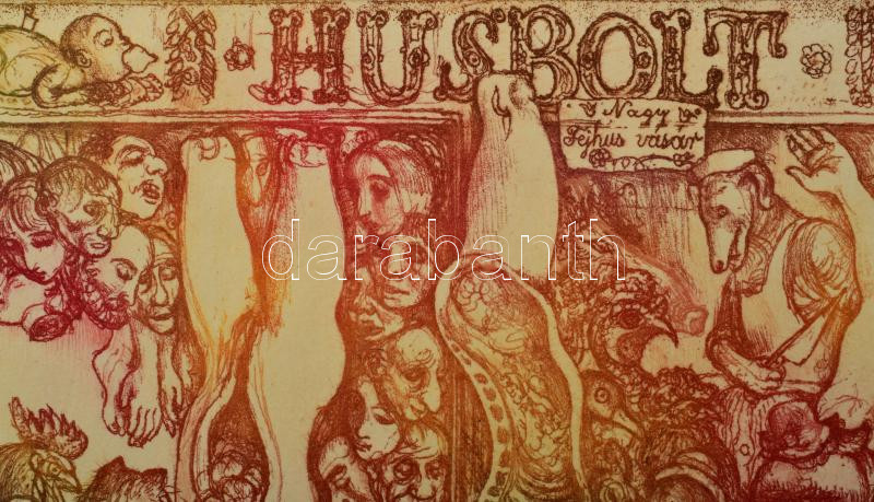 Szabó Vladimír (1905-1991): Husiparos rémálma. Színes rézkarc, papír, ... https://www.darabanth.com/en/505-Online-auction/505.0/Paintings-and-graphics/Paintings-and-graphics~2852/Szabo-Vladimir-1905-1991-Husiparos-remalma-Szines-rezkarc-papir-jelzett-Muveszpeldany~II3421413