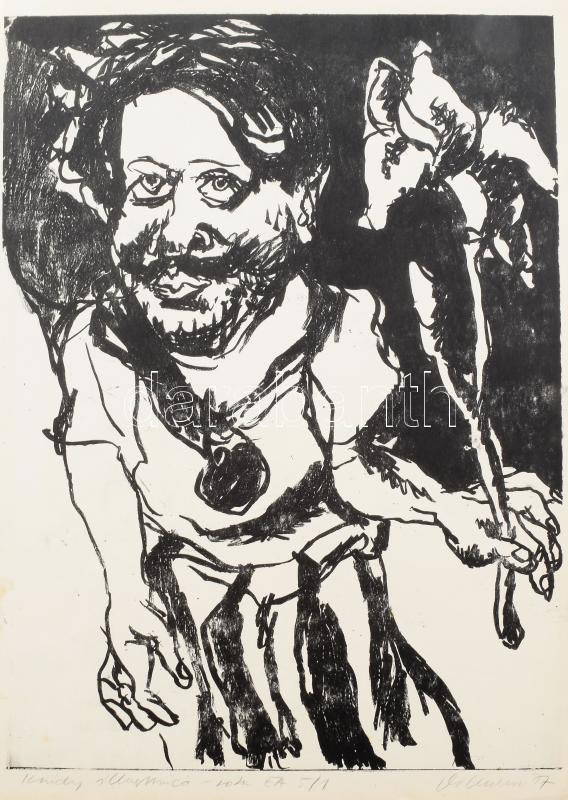 Vilhelm (Wilhelm) Károly (1943-2011): Krúdy illusztráció, 1977. Rota (ofszet), papír, jelzett, művészpéldány EA 5/1 számozással, 45×33 cm