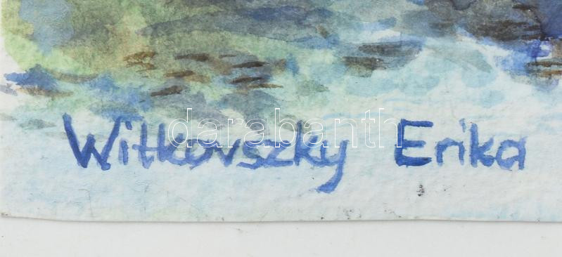 Witkovszky Erika (1937-): Vízparti táj. Akvarell, papír, jelezve balra lent. Dekoratív, üvegezett fakeretben. 18,5x21 cm.