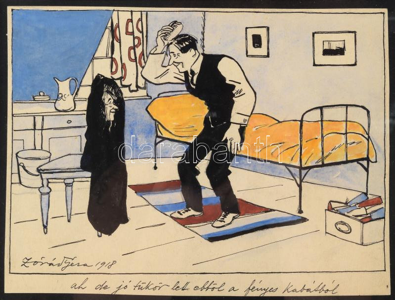 Zórád Géza (1882-1961): "Ah de jó tükör lett ebből a fényes kabátból" ... https://www.darabanth.com/en/505-Online-auction/505.0/Paintings-and-graphics/Paintings-and-graphics~2852/Zorad-Geza-1882-1961-Ah-de-jo-tukor-lett-ebbol-a-fenyes-kabatbol-karikatura-1918~II3433598