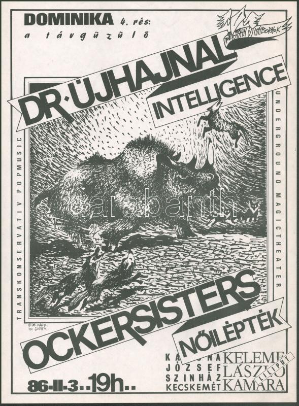 Bernáth(y) Sándor (1949-2012): Dr. Újhajnal Intelligence, Ockersisters, Nőilépték, 1986, Katona József Színház, Kecskemét. Underground plakát, papír, jelzett a plakáton. 38,5x28,5 cm