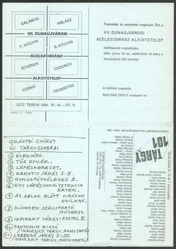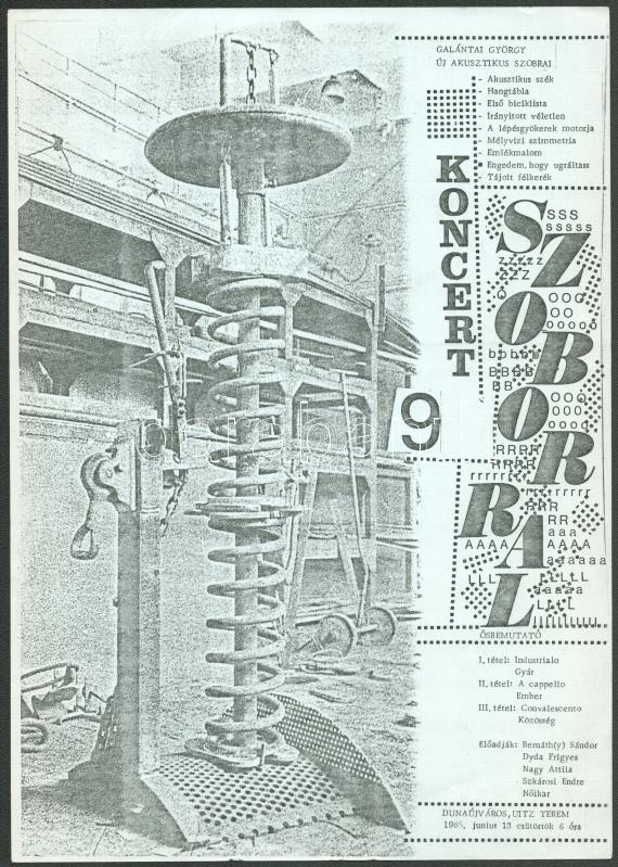 Galántai György (1941-): Koncert szoborral, Galántai György új akusztikus szobrai, 1985. Kétoldalas plakát vagy plakátterv, 29,5x21 cm. Ritka!