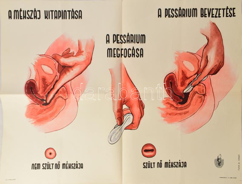 cca 1950-60 Pessarium bevezetése, egészségügyi felvilágosító plakát, ofszet, papír, Matkó B. Szeged jelzéssel, Nyomdakísérleti, hajtva, apró lapszéli szakadásokkal, 59,5x84 cm