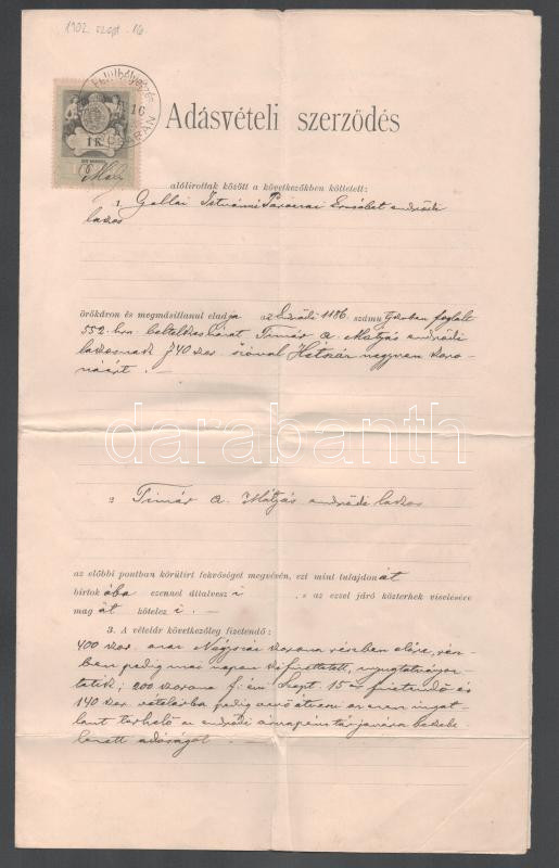 https://www.darabanth.com/en/506-Online-auction/506.0/Art-and-other-collectibles/Documents~62/1902-Bekescsaba-adasveteli-szerzodes-Gallai-Istvanne-Paroczai-Erzsebet-es-Timar-Matya~II3405201