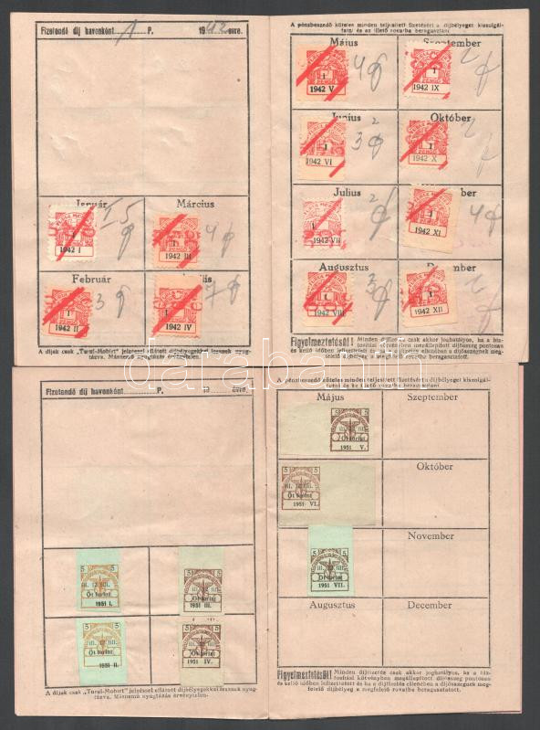 1941-1951 2 db Turul Magyar Országos Biztosító díjbefizetési könyvecsk...