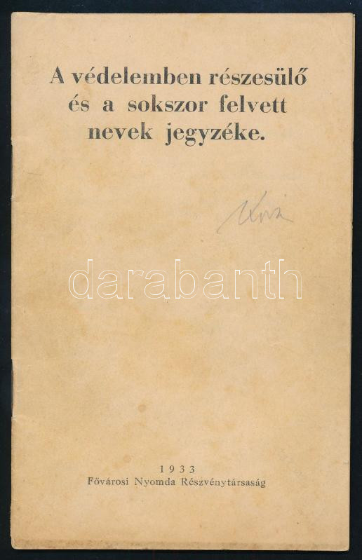 https://www.darabanth.com/en/506-Online-auction/506.0/Art-and-other-collectibles/Printed-Materials~77/1933-A-vedelemben-reszesulo-es-a-sokszor-felvett-nevek-jegyzeke-39p-3Cbr-3E~II3428973