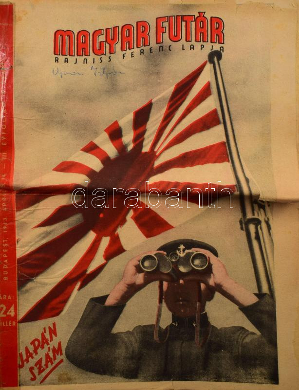 https://www.darabanth.com/en/506-Online-auction/506.0/Art-and-other-collectibles/Printed-Materials~77/1943-Magyar-Futar-Rajniss-Ferenc-lapja-III-evf-16-sz-Japan-szam-serulesekkel-foltok~II3429756