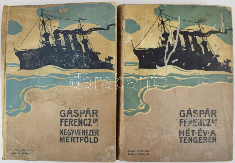 Description: Dr. Gáspár Ferenc: Negyvenezer mérföld vitorlával és gőzzel. Bp., Singer és Wolfner. + Dr. Gáspár Ferenc: Hét év a tengeren. Egy tengerészorvos naplójából. Kiadói egészvászon kötés, viseltes állapoban.