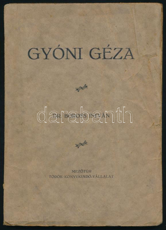 Boross István: Gyóni Géza. A költő halálának tíz éves évfordulójára. I... https://www.darabanth.com/en/506-Online-auction/506.0/Books/Books-History~614/Boross-Istvan-Gyoni-Geza-A-kolto-halalanak-tiz-eves-evfordulojara-Irodalomtorteneti~II3413281