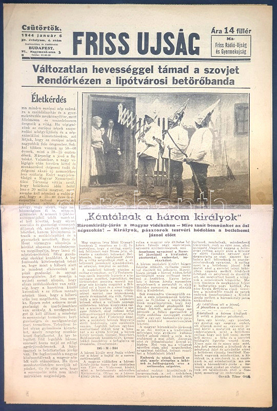 [II. Világháború] Friss Ujság. 1944. január 6. (Napilap, 49. évfolyam,... https://www.darabanth.com/en/506-Online-auction/506.0/Books/Books-History~614/II-Vilaghaboru-Friss-Ujsag-1944-januar-6-Napilap-49-evfolyam-4-szam-Valtozatlan~II3415742