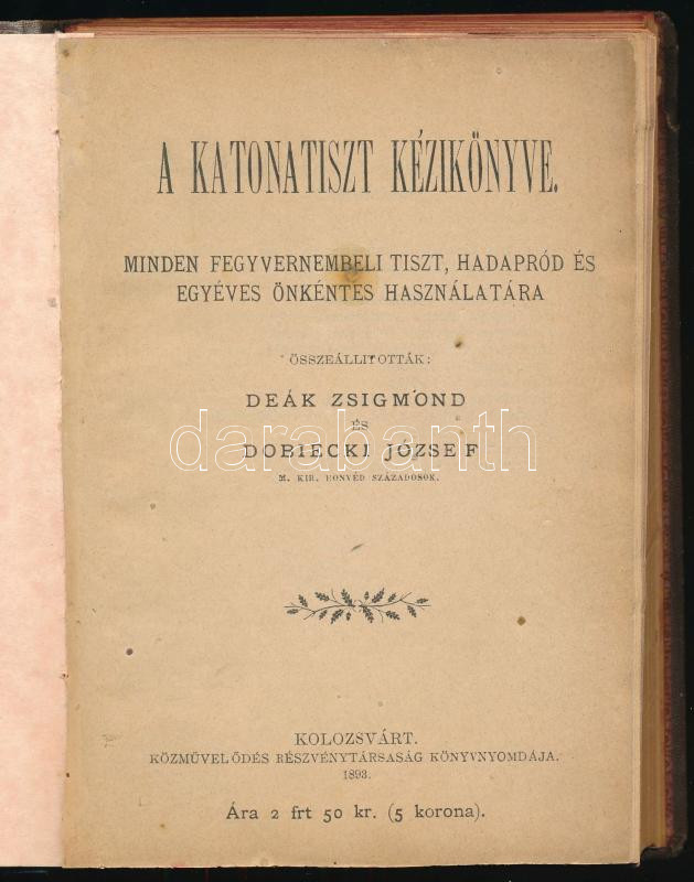 A katonatiszt kézikönyve. Minden fegyvernembeli tiszt, hadapród és egy... https://www.darabanth.com/en/506-Online-auction/506.0/Books/Books-Military~615/A-katonatiszt-kezikonyve-Minden-fegyvernembeli-tiszt-hadaprod-es-egyeves-onkentes-hasznala~II3428646