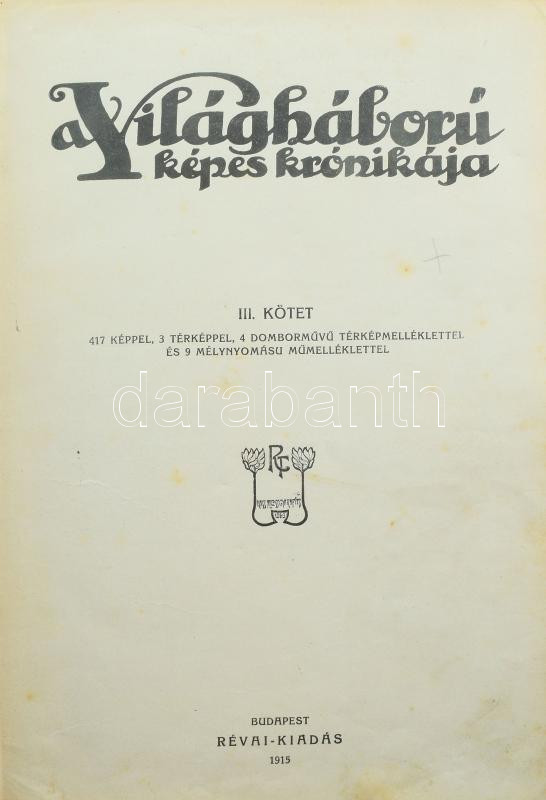 A világháború képes krónikája. II-III. köt. Bp., 1915, Révai. Rendkívü... https://www.darabanth.com/en/506-Online-auction/506.0/Books/Books-Military~615/A-vilaghaboru-kepes-kronikaja-II-III-kot-Bp-1915-Revai-Rendkivul-gazdag-szovegkoz~II3430018