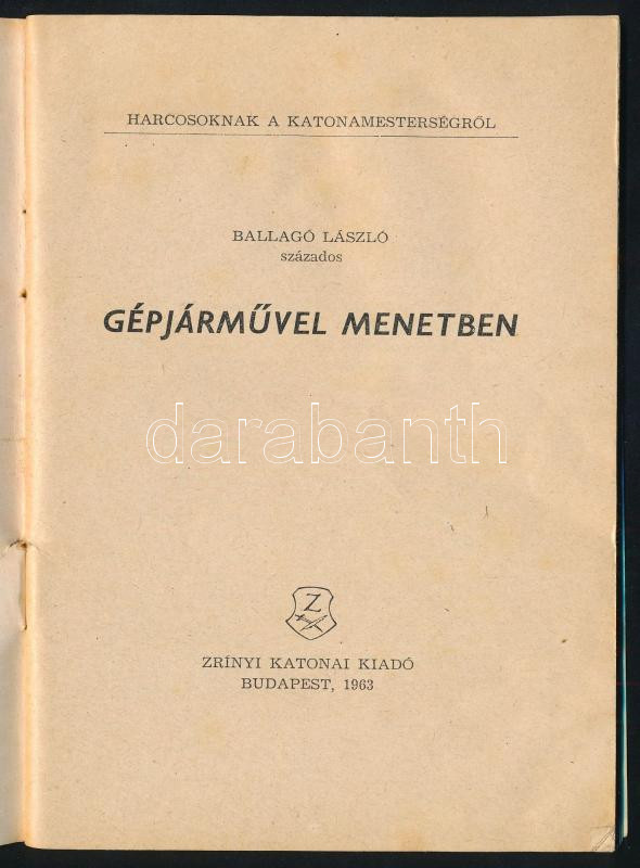 https://www.darabanth.com/en/506-Online-auction/506.0/Books/Books-Military~615/Ballago-Laszlo-Gepjarmuvel-menetben-Harcosoknak-a-katonamestersegrol-Bp-1963-Zrinyi-~II3428557