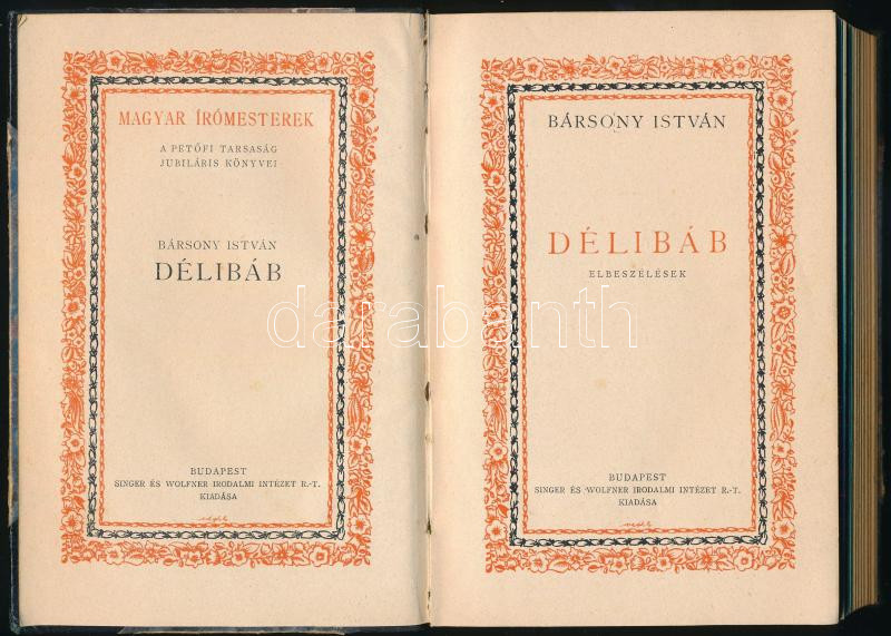 Bársony István: Délibáb. Elbeszélések. Bp., Singer és Wolfner. Félbőr ...