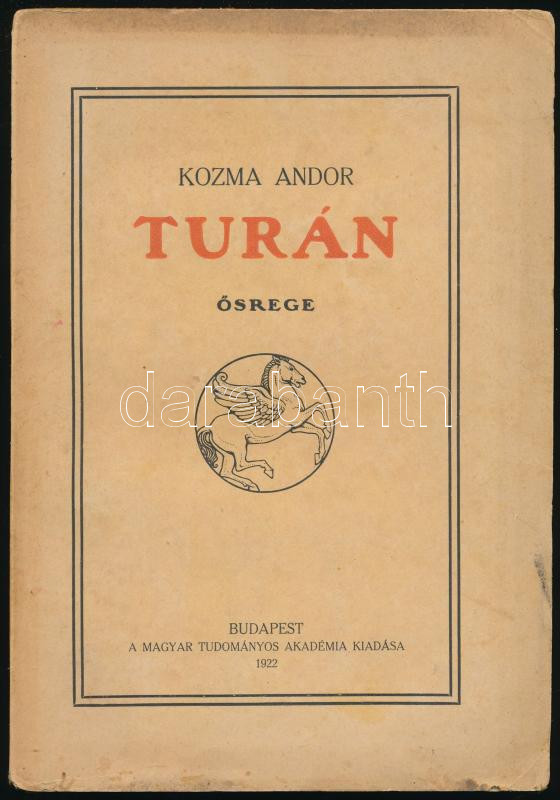 Kozma Andor: Turán. Ősrege. Bp., 1922, MTA (Hornyánszky-ny.), 247+(1) ... https://www.darabanth.com/en/506-Online-auction/506.0/Books/Books-Other-rarities~648/Kozma-Andor-Turan-Osrege-Bp-1922-MTA-Hornyanszky-ny-247plus1-p-Elso-kiadas-Kiadoi-p~II3417954