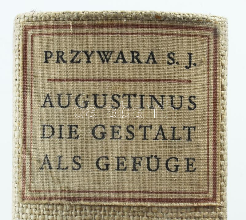 Przywara, Erich: Augustinus. Die Gestalt als Gefüge. Lepizig, 1934, Jakob Hegner, 647+1 p. Német nyelven. Kiadói egészvászon-kötésben.