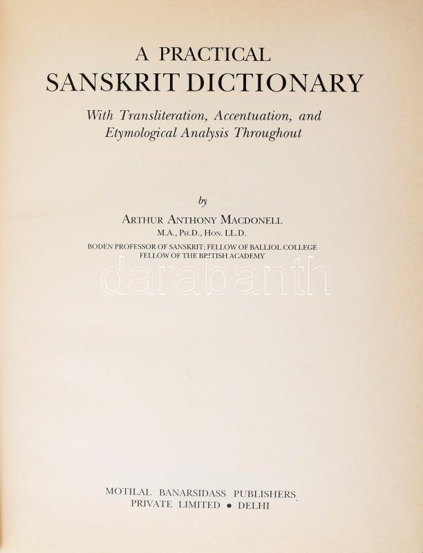 Macdonell, Arthur Anthony. A practical Sanskrit dictionary with transl... https://www.darabanth.com/en/506-Online-auction/506.0/Books/Books-Social-sciences~621/Macdonell-Arthur-Anthony-3Cem3EA-practical-Sanskrit-dictionary3Cem3E-with-transliteration-accentuati~II3415075