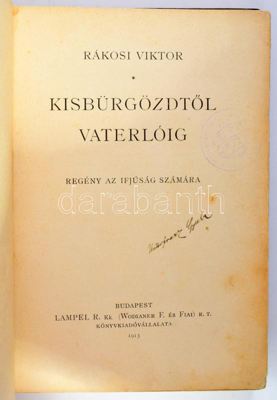 https://www.darabanth.com/en/506-Online-auction/506.0/Books/Books-Tales~628/Rakosi-Viktor-Kisburgozdtol-Vaterloig-Bp-1913-Lampel-Felvaszon-kotes-kisse-kopottas~II3432766