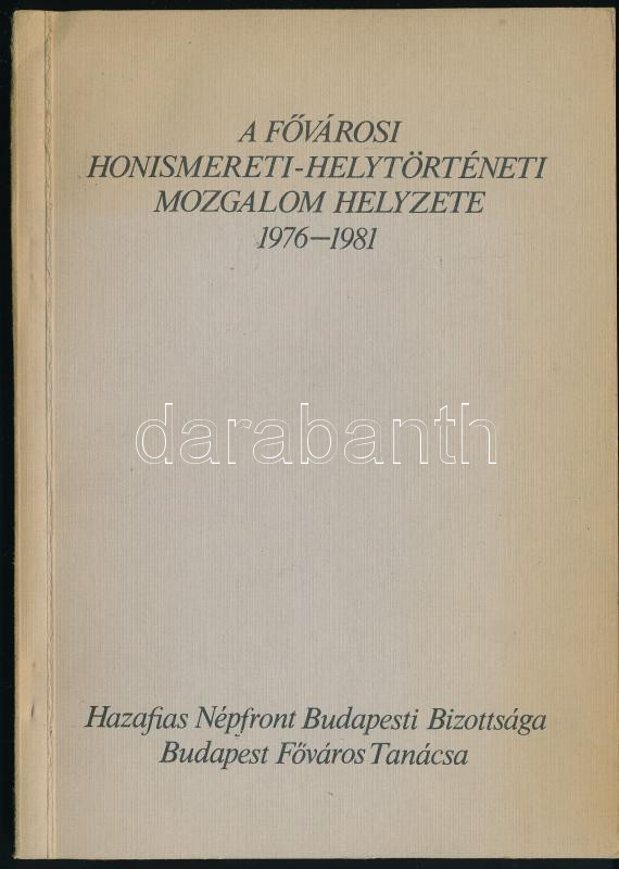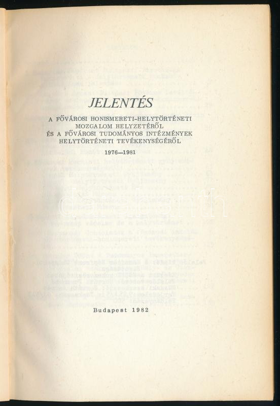 Dr. Gerelyes Ede: Jelentés a fővárosi honismereti-helytörténeti mozgalom helyzetéről és a fővárosi tudományos intézmények helytörténeti tevékenységéről 1976-1981. Összeáll. és szerk.: - - . Bp., 1982, Hazafias Népfront Budapesti Bizottsága - Budapest Főváros Tanácsa. Kiadói papírkötés. Megjelent 500 példányban.