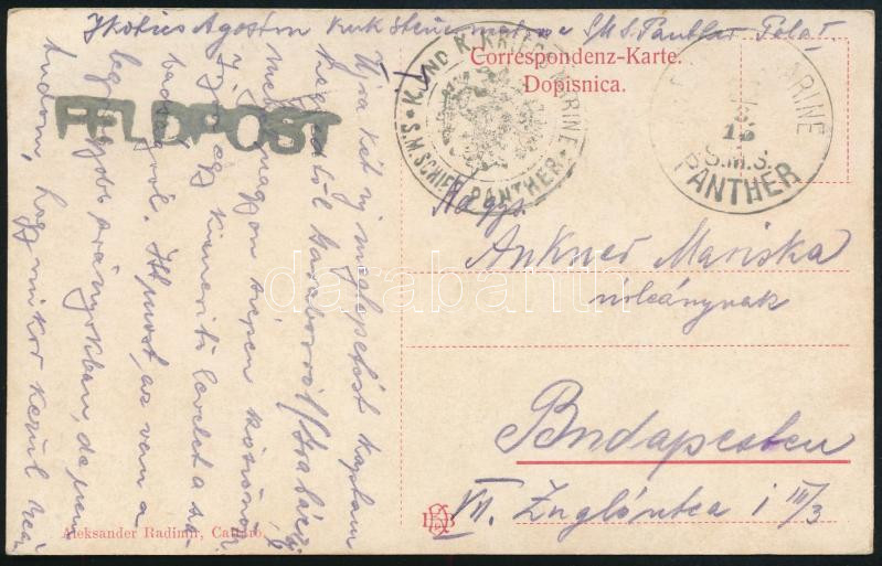1915 Tábori posta képeslap "K. UND K. KRIEGSMARINE / S. M. SCHIFF PANTHER"