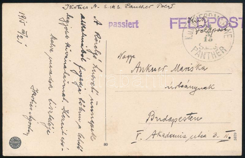 https://www.darabanth.com/en/506-Online-auction/506.0/Hungarian-philately-and-postal-history/Austro-Hungarian-fieldpost-WWI-Naval-force~40/1915-Tabori-posta-kepeslap-K-u-K-KRIEGSMARINE-S-M-S-PANTHER-passiert~II3431587
